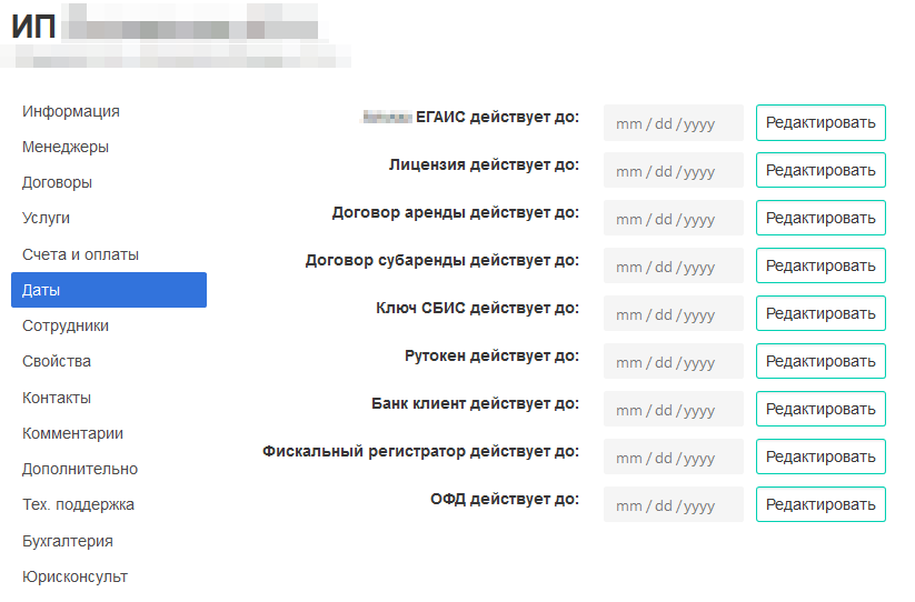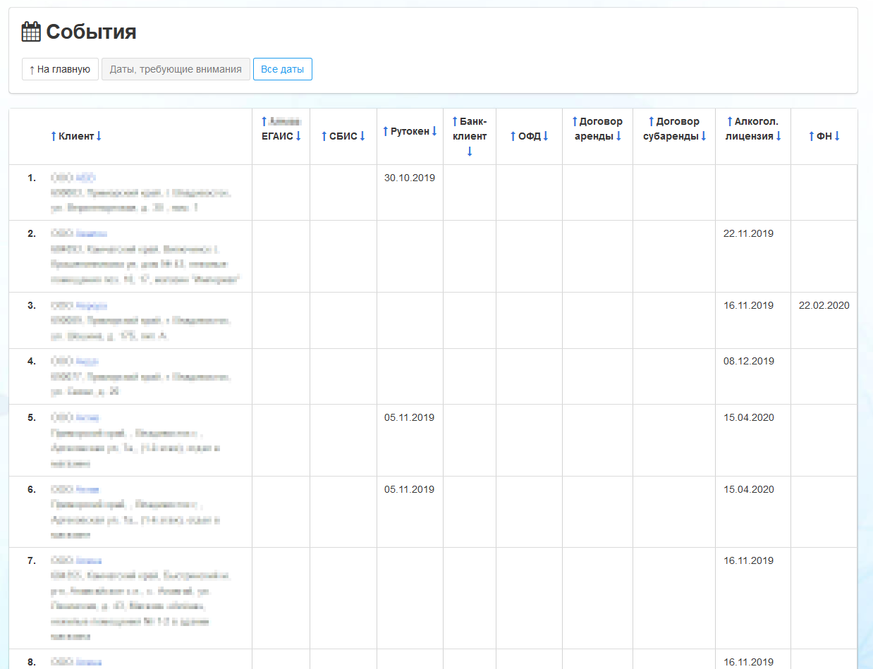 По каждому клиенту можно указать дату наступления важного для его бизнеса события. Примеры: истечение срока действия TLS-сертификата для сайта, договора аренды, и др.