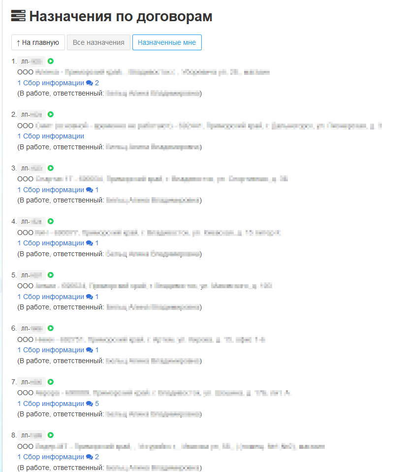 Рис. 20. Общий список активных бизнес процессов по договорам клиентов