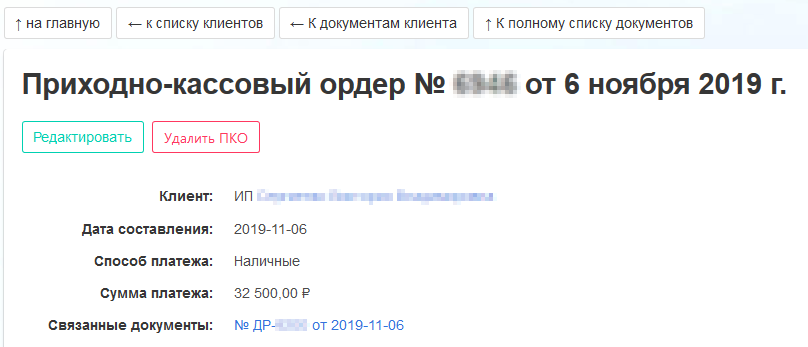 Рис. 22. Приходно-кассовый ордер с привязкой к выставленному счету